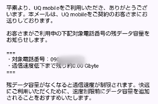 この契約は0になったら強制的にギガを買わせるのではなく、低速になってしまう。