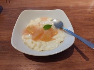 デザートは奥様が黒糖タピオカ豆花、まーぶーが白桃豆花を選択。