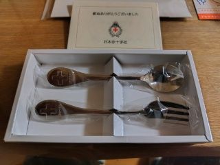 タオルはすぐにダメになりそうだし、箸も噛んでしまう可能性があり、選んだのはスプーン&フォーク。