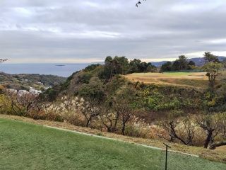 写真のショートホールは、海の上に初島や大島を臨むのだが、しっかりと崖に落としてしまった。