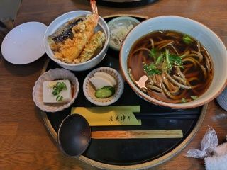 今日の場合それでは意味がないので、ランチのセットにして、天丼とかけそば。