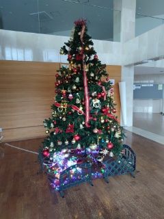 ふと気付いて写真に撮ったのが、マンションのエントランスにあるクリスマスツリー。