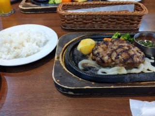 昼ご飯も定番のスエヒロ館のハンバーグ。