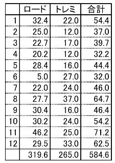 これで今年のランの合計は584.6キロで、外ランが319.6キロで、トレミが265.0キロ。