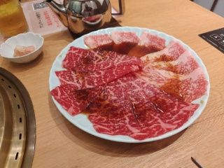 料理は【烏丸コース】という、厚切りタンやミルフィーユロースなど、新旧のメニューを味わえるプランを予約。