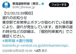 この非常ボタンはなかなか解消されず、こだまは12時40分くらいに出発し、まーぶーの乗るのぞみも、12分遅れの出発。