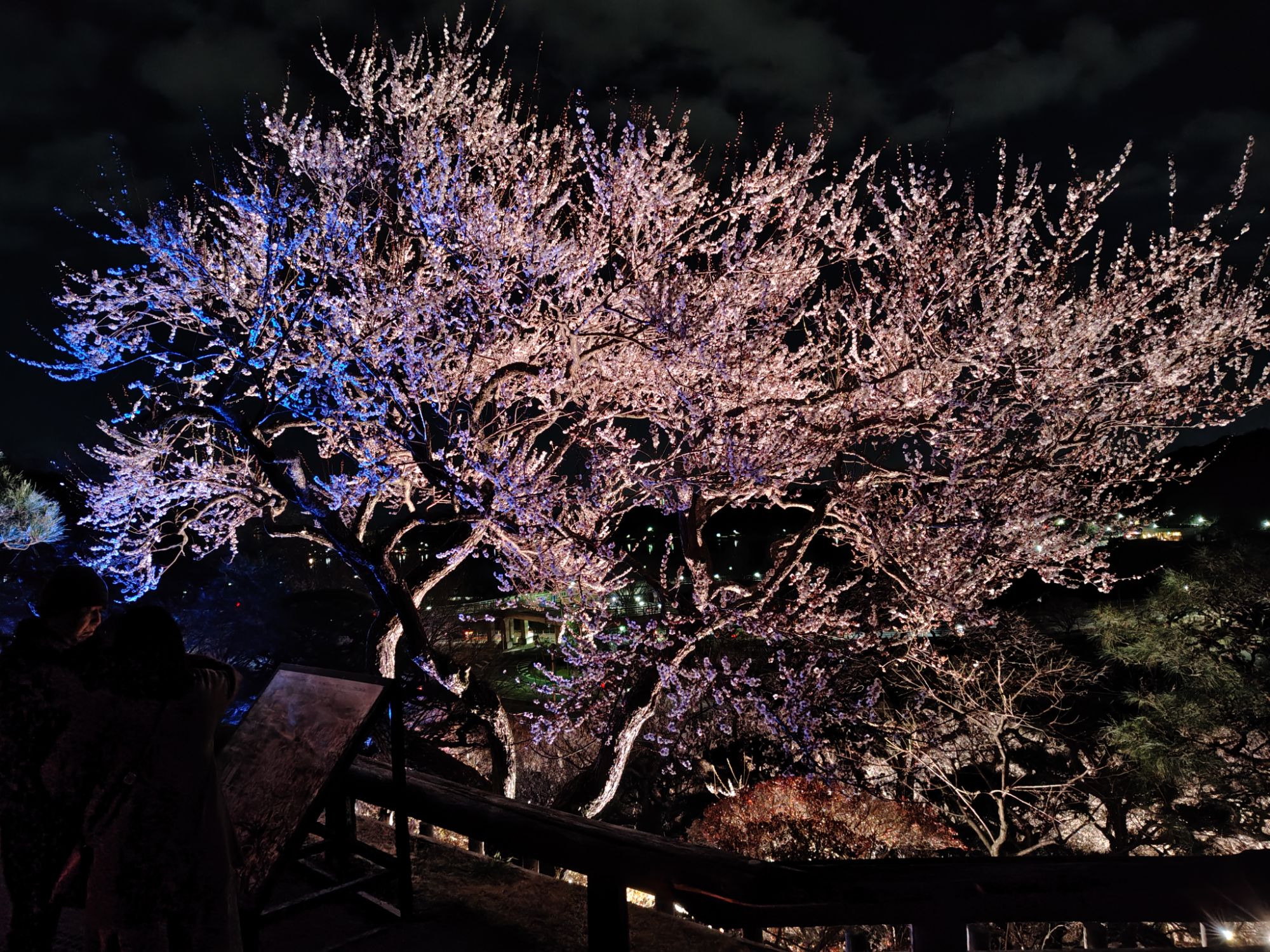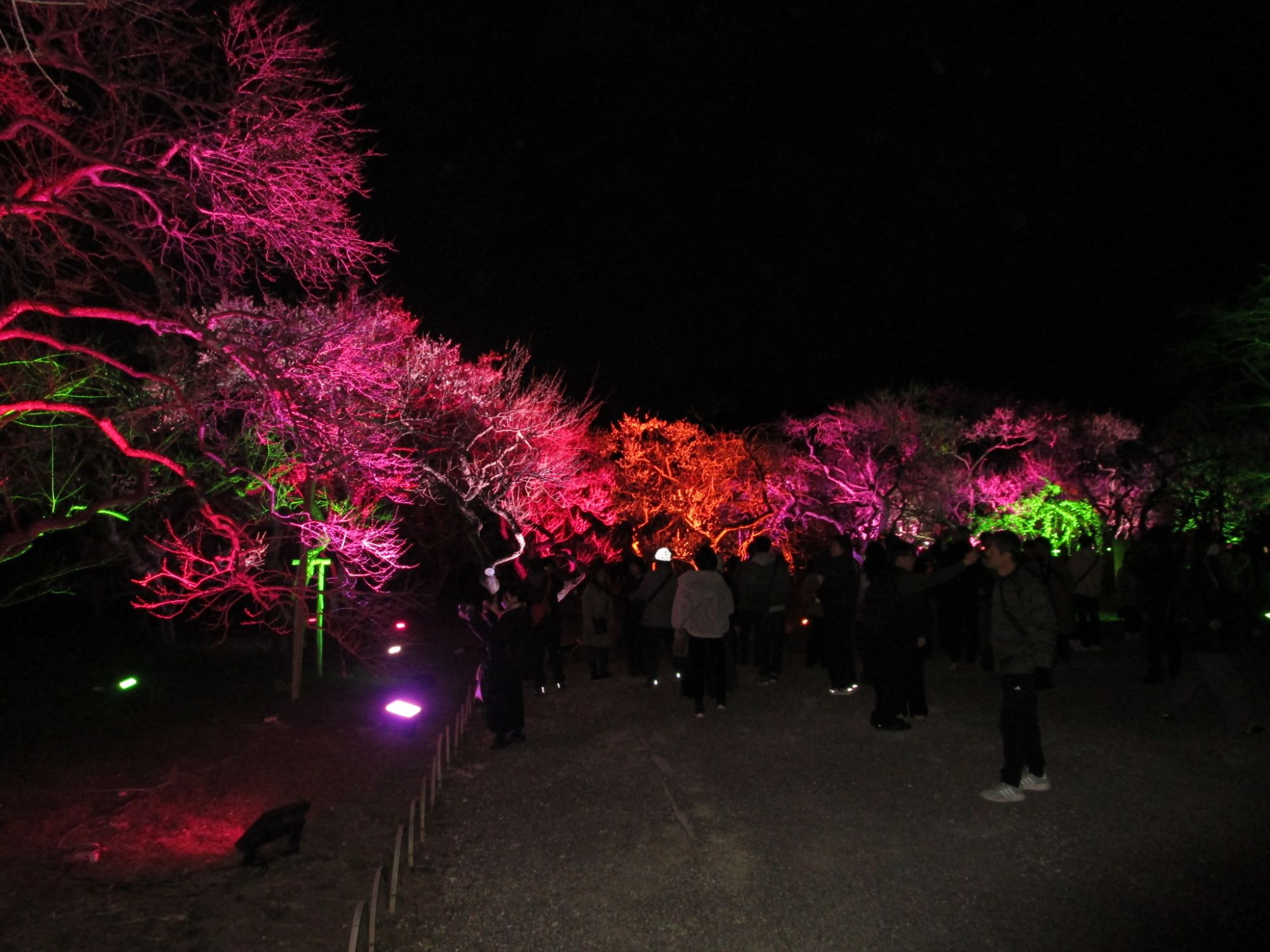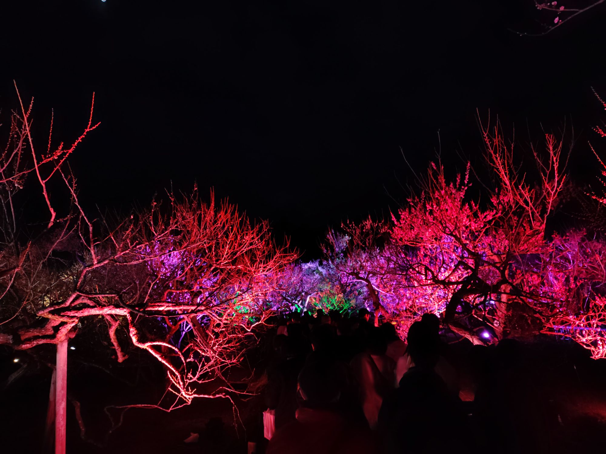 最初は色とりどりのライトアップが綺麗だと思ったが、そもそも梅のライトアップに必要なのかよくわからなくなった。