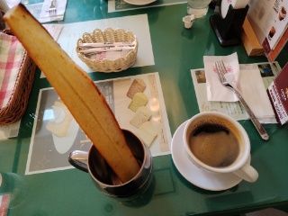 しばらくして、サラダ、コーヒー、バケットが順番にやって来る。