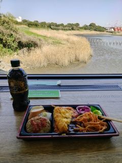 この場所で食べるのは、目の前の「潮入りの池」が一望でき、それなりに鳥が見れると思ったから。