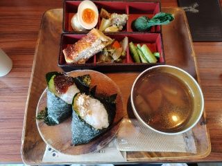 注文は待っている間に「新潟おむすび御膳」に決めていて、おむすびは焼き塩麹鯖と貝柱味噌を選択。