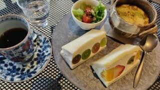 5回目の果実屋珈琲は、約1時間20分待って、オニオングラタンスープと選べるサンドプレート。